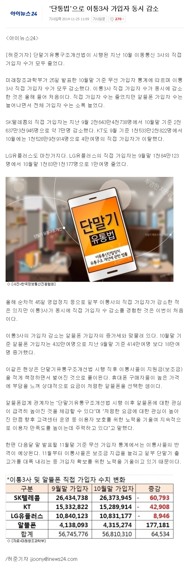 '단통법'으로 이통3사 가입자 동시 감소, 알뜰폰 가입자 증가 페이지 정보 작성자 관리자 작성일14-11-25 18:20 조회6,355회 댓글0건 이전글 다음글 목록 본문 '단통법'으로 이통3사 가입자 동시 감소, 알뜰폰 가입자 증가 댓글목록 등록된 댓글이 없습니다. 이전글 다음글 목록