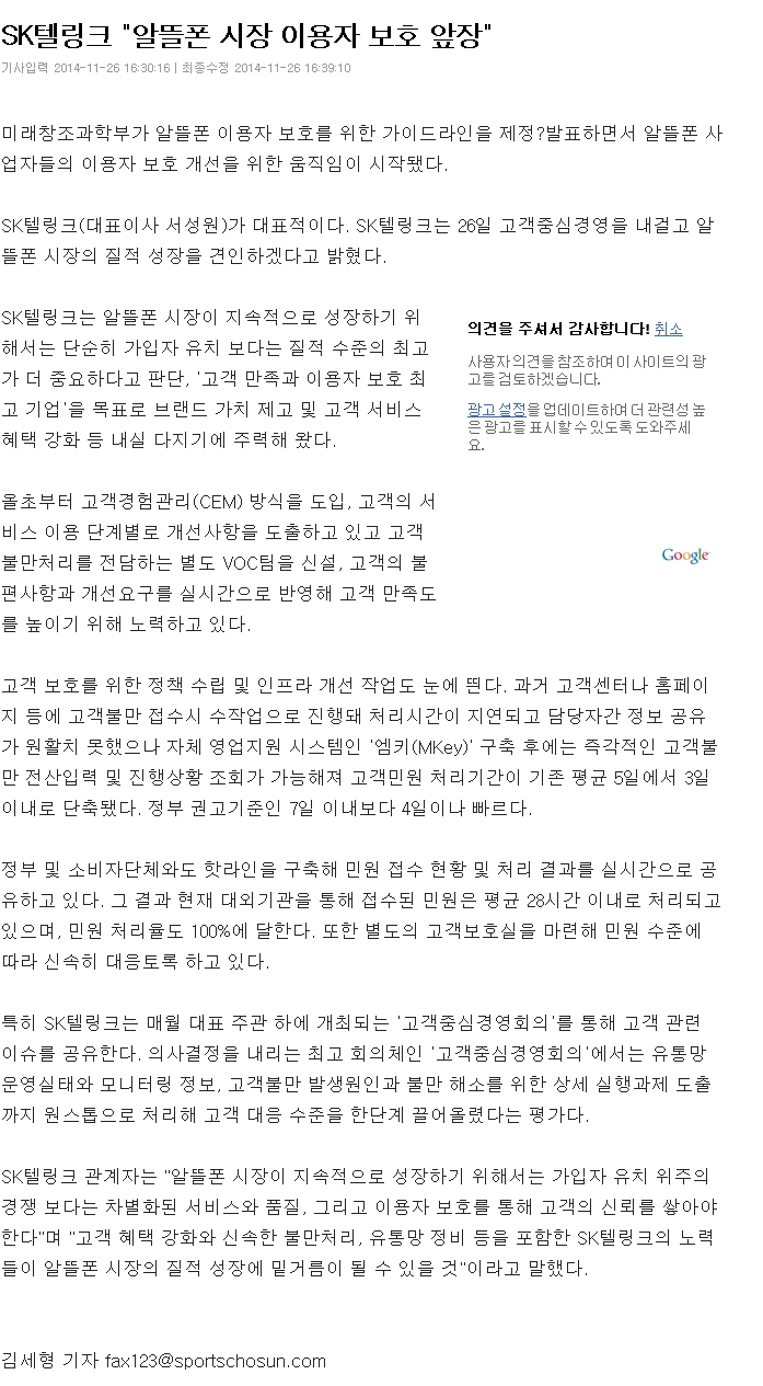 SK텔링크, 알뜰폰 시장 이용자 보호 앞장 선다 페이지 정보 작성자 관리자 작성일14-11-27 18:20 조회7,076회 댓글0건 이전글 다음글 목록 본문 SK텔링크, 알뜰폰 시장 이용자 보호 앞장 선다. 댓글목록 등록된 댓글이 없습니다. 이전글 다음글 목록