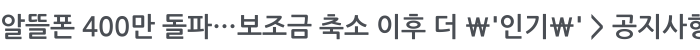 알뜰폰 400만 돌파…보조금 축소 이후 더 '인기' 페이지 정보 작성자 관리자 작성일14-10-08 10:58 조회4,815회 댓글0건 이전글 다음글 목록 본문 알뜰폰 400만 돌파…보조금 축소 이후 더 '인기' 댓글목록 등록된 댓글이 없습니다. 이전글 다음글 목록