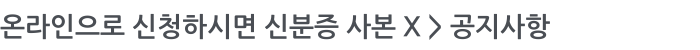 온라인으로 신청하시면 신분증 사본 X 페이지 정보 작성자 최고관리자 작성일13-02-02 15:45 조회5,328회 댓글0건 이전글 다음글 목록 본문 온라인으로 신청하시는 분은 신분증사본을 발송하실 필요가 없습니다. 댓글목록 등록된 댓글이 없습니다. 이전글 다음글 목록